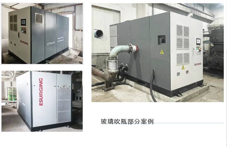 玻璃包装是啤酒生产的关键环节。玻璃吹瓶是玻璃成型工艺中的一种,通过压缩空气将高温熔融的玻璃液吹成各种不同形状的玻璃容器,该工艺对于空气压缩机的稳定性和含油量有一定的要求。雷竞技安卓下载磁悬浮空气压缩机凭借其100%无油特性和稳定的气压输出,全方位满足客户使用需求。