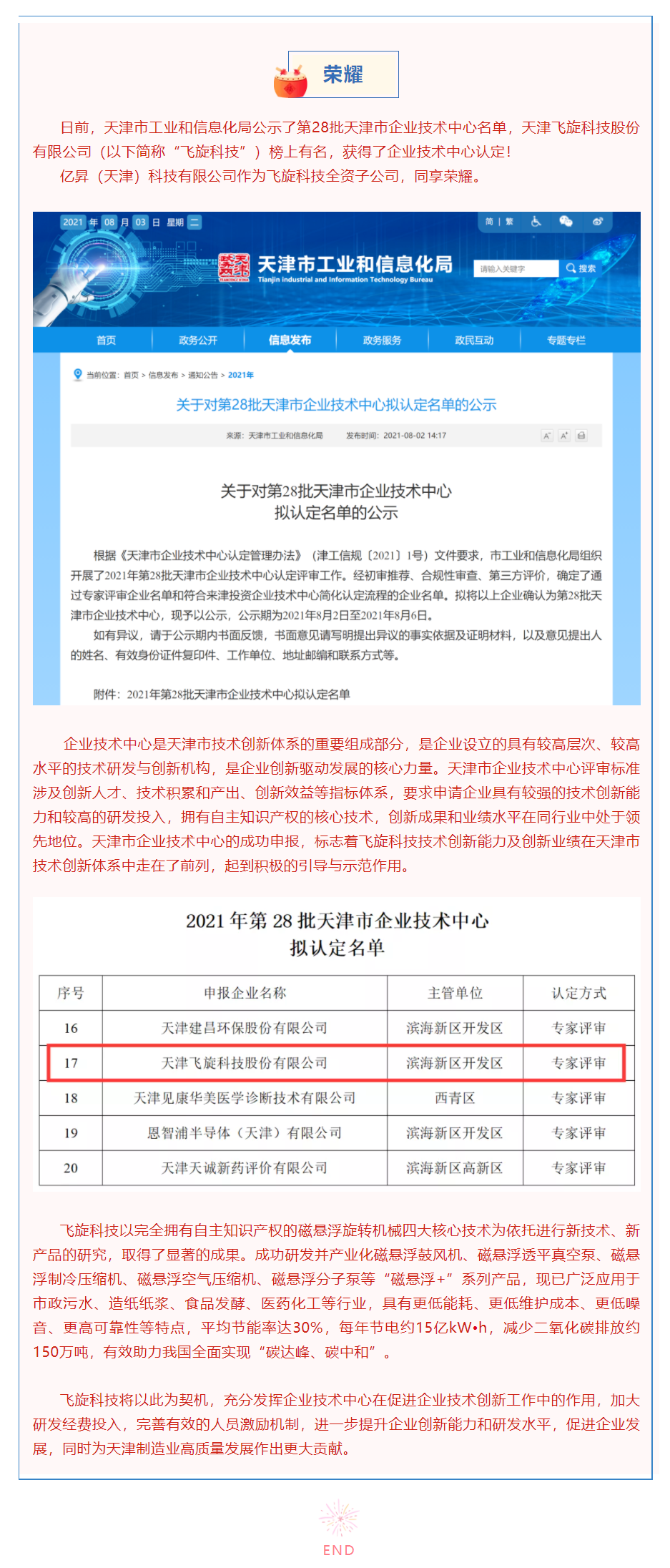 集团新闻|喜报!飞旋科技获得天津市企业技术中心认定