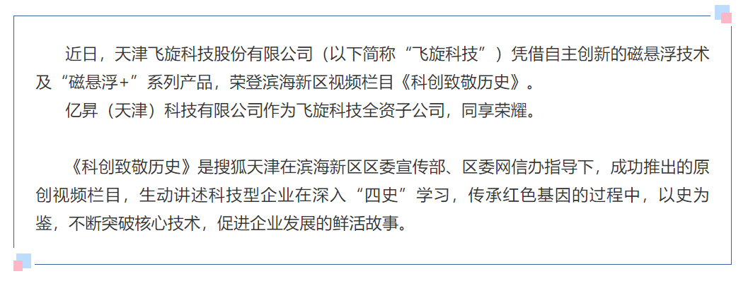 集团新闻| 飞旋科技荣登《科创致敬历史》栏目