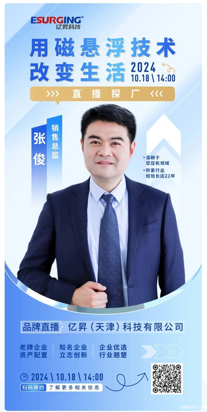 雷竞技raybet入口磁悬浮空压机销售总监张俊将代表公司出席此次直播活动。张总不仅会深入解析磁悬浮空压机的工作原理与技术亮点,还特别策划了直播探厂环节,将亲自带领观众走进生产线,近距离感受磁悬浮空压机的制造过程。敬请期待!